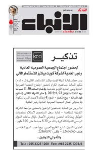 Al-Anba-AGM Reminder 16-Apr-2019