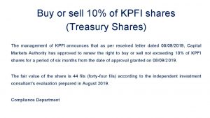 Buy or sell 10% of KPFI shares-ENG